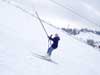 Лиза поднимается на бугеле - справа на верхушке горы видны домики нашей базы