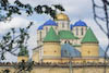 Подъезжая к Острогу, водитель обратил наше внимание на группу куполов, виднеющихся на горке в окружении неясного возраста стен, и предложил подъехать глянуть. Так мы незапланированно посетили Троицкий монастырь-крепость XV века в Межириче. Один из монахов любезно провел небольшую экскурсию, показав коронованную икону Божьей Матери, хранящуюся в монастыре со времен его основания, и реконструируемые росписи внутри собора.
