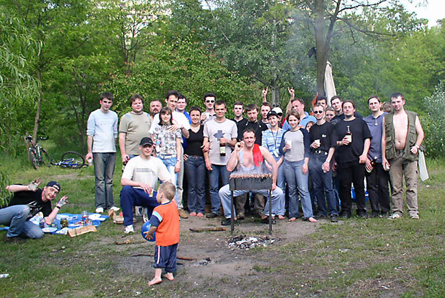 Вот собственно и весь коллектив - по-моему человек 30 с дитями и собаками. Что удивительно шашлыков и пива всем хватило от пуза.