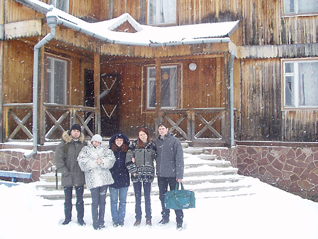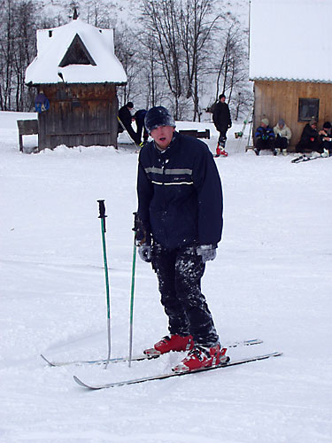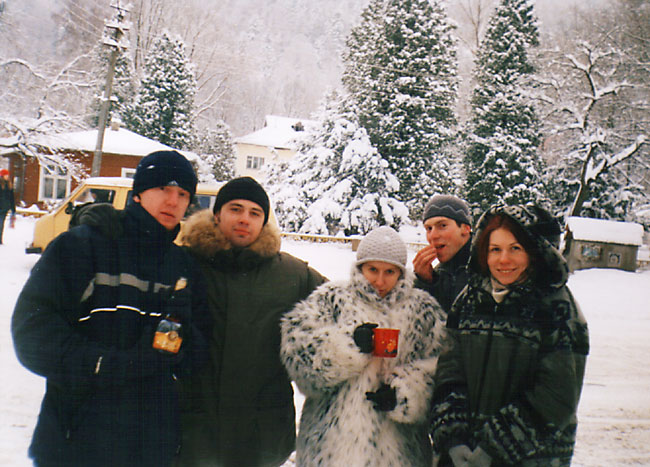 Сначала всё шло на удивление хорошо (не считая того, что в поезде ребята недобро грызлись между собой). Из Ивано-Франковска мы на маршрутке за 6грн приехали в Коломыю к знакомым Катищи и поселились в роскошные номера спорткомплекса "Локомотив" абсолютно на шару. Поиграли в настольный теннис, сходили в сауну. Знакомые перезвонили на несколько баз и мы выбрали Горный - оптимальный вариант по цене и расположению. С утра мы сели в дизель до Яремчи. Протрусившись 3 часа в неотапливаемом вагоне мы десантировались уже в горах. Маршрутки в Яблуныцю (именно там располагалась наша база) довольно долго не было, поэтому приходилось обогреваться подручными средствами. Короче, на базу мы приехали, расселились по двухместным номерам, откуда выбирались в генделыки и покататься на лыжах. Никаких общих пьянок (на что я в тайне рассчитывал) не было, Саня и Лена на второй день конкретно заболели и вообще никуда не вылазили, с ДиММом и Лизой мы встречались в основном на спусках. Огорчённый таким некультурным времяпровождением на третий день я в компании Лизы и Катищи выглушил пол бутылки коньяка "Карпаты" (43% объёмных) чем СИЛЬНО расстроил свою печень - до конца отдыха я питался мюслями, кашками и белым хлебом без корочки. Зато погода и вообще катание на лыжах было просто КЛАССНЫМ. Время от времени подсыпало нового снежку, ветра практически не было, температура не опускалась ниже -10. Так что покатались мы классно. Полностью освоили 900 метровый спуск, а я даже пару раз упал и поломал крепление на ботинке на 1200 метровом. Я на ближайший месяц наигрался в МтГ и вообще отдохнул морально и физически. Ну и с личной жизнью на базе отдыха тоже неплохо - да, ДиММ? ;) В одном баре в последний день мы даже нашли настольный теннис :)