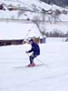 Лиза поднимается на бугеле - справа на верхушке горы видны домики нашей базы