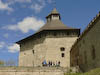 Затем мы подъехали к Острожскому замку, от которого уцелело пара башен, впрочем неплохо восстановленных. В подвалах замка обнаружился краеведческий музей. Группа добровольцев отправилась его исследовать, а остальные распространились по центру Острога в поисках места, где можно было бы пообедать. К моменту, когда был осмотрен музей, поисковые группы обнаружили пиццерию и две башни оставшиеся от городских фортификаций. Пообедав, мы осмотрели башни. Довольно любопытно то, что Луцкая восстановлена полностью и там музей книги, а Татарская так и стоит на чьем-то огороде в руинах.